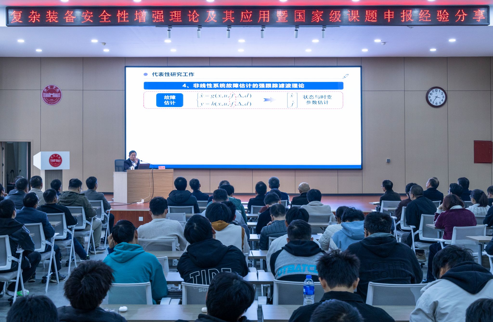 周东华教授以《复杂装备安全性增强理论及其应用暨国家级课题申报经验分享》为主题,围绕电站、空间站等重大装备的安全运行需求,系统介绍了其团队在非平稳工业过程异常监测的复杂变量方法、随机退化系统剩余寿命估计、非线性系统故障估计的强跟踪滤波理论、随机高阶全驱系统的容错控制等方面取得的成果,并以详实的案例展示了在多个领域的应用成效。随后,他结合多年科研经验,就国家级科研项目申报中的选题凝练、科学问题提炼、技术路线设计与团队组织等关键环节进行了深入讲解,为青年教师提供了有针对性的指导。