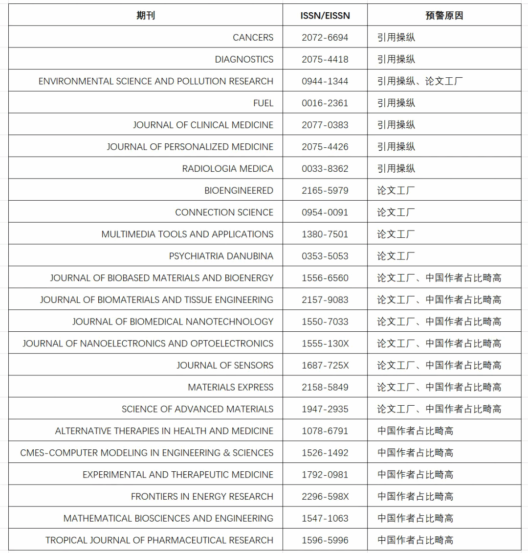 (一) 中国科学院公布的《国际期刊预警名单》。