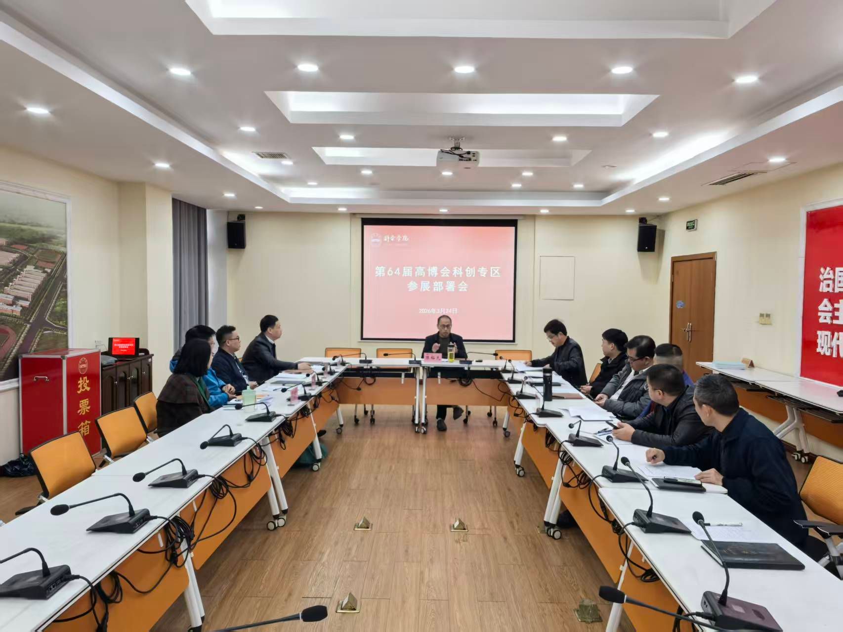 3月24日,我校在行政楼一楼会议室召开第64届高博会科创专区参展工作部署会。校党委委员、副校长陈裕先出席会议并讲话。科研处、对外合作交流中心及相关二级学院负责人参加会议。